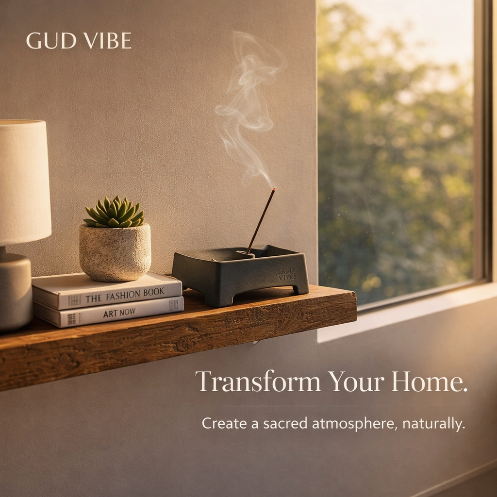 GudVibe creates premium handcrafted incense designed to elevate your spiritual and daily rituals. Our fragrances are made using carefully selected natural ingredients to create calming and uplifting experiences. Rooted in Indian tradition, GudVibe blends purity, craftsmanship, and modern aesthetics to bring divine fragrances into every home.